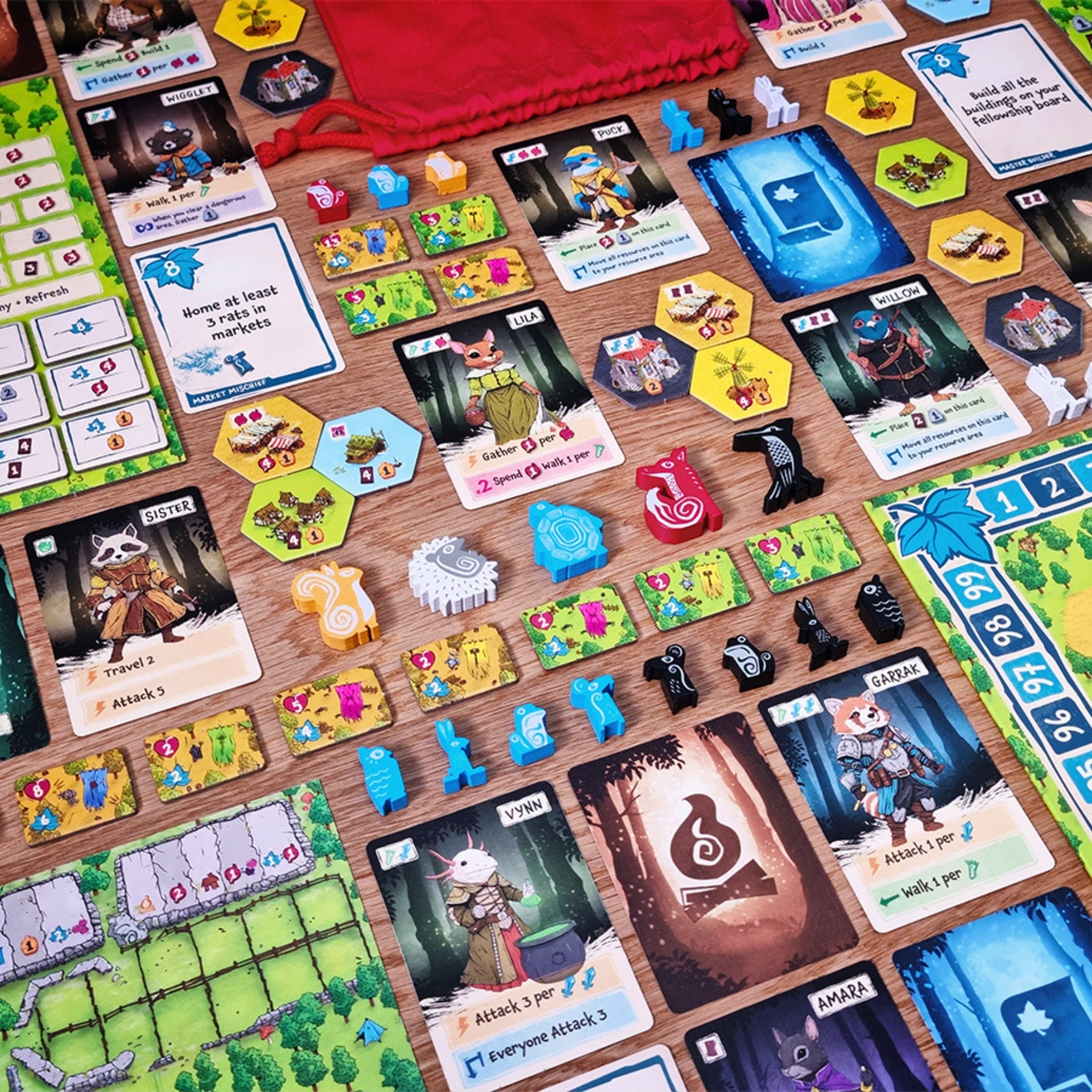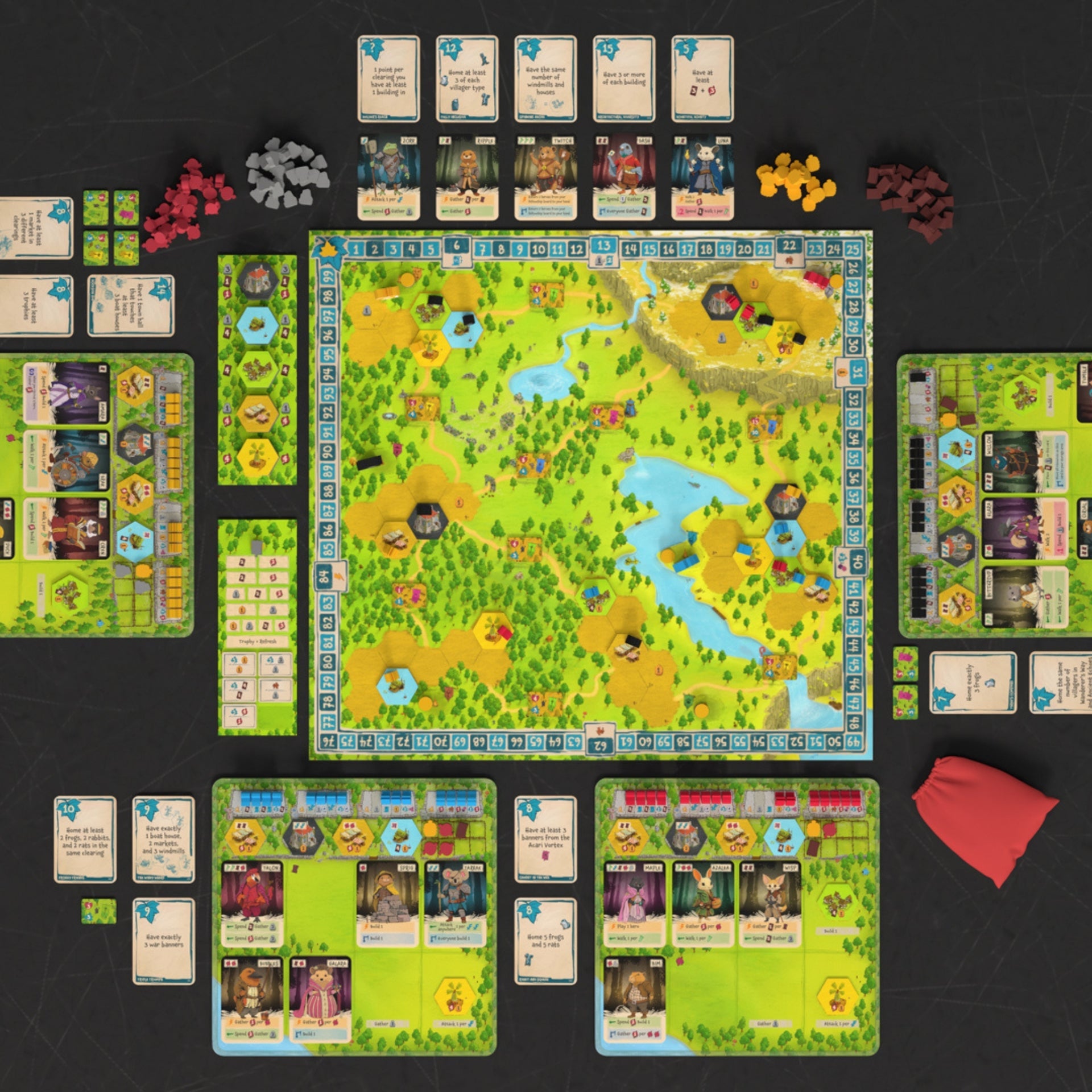Het spel introduceert een uniek mechanisme dat ‘kaartdansen’ wordt genoemd, waarbij je heldenkaarten binnen een bewegend raster plaatst om vaardigheden te activeren en je gezelschap te versterken. Door kaarten te verschuiven kun je krachtige combinaties in gang zetten en ze op het perfecte moment opladen voor nog grotere effecten. Daarnaast bouw je kleurrijke dorpen door tegels te plaatsen die inspelen op de uiteenlopende behoeften van je dorpelingen. Door het rekruteren van nieuwe helden breid je niet alleen je vaardigheden uit, maar versterk je ook je bestaande gezelschap, wat zorgt voor een sterk engine-building-element. Terwijl je het bos doorkruist, moet je bovendien strategisch grondstoffen beheren, gevaarlijke gebieden ontruimen en zorgvuldig plannen hoe je jouw middelen inzet.
